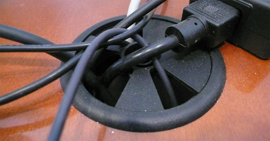 Cluttered desks distract, increase anxiety, and decrease efficiency. Channeling cables neatly through desktop grommets frees up valuable surface space that otherwise becomes dominated by sprawling wires.